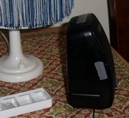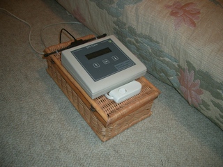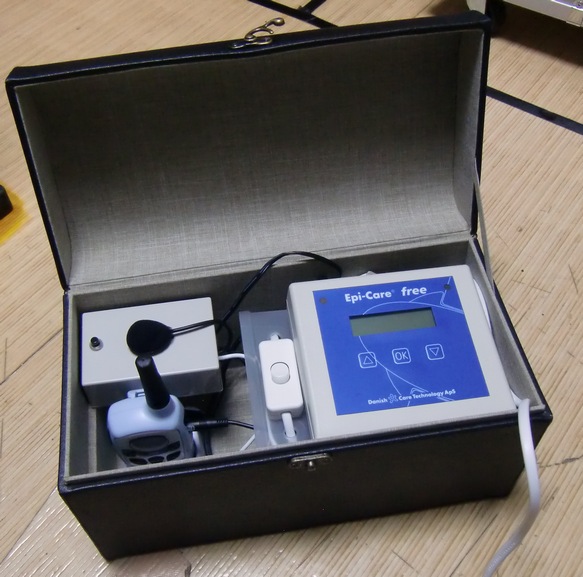 Das erste Epi-Care. Hinter dem Geraet sieht man die Antenne fuer die Sendeeinheit, die sich im Kaestchen befindet (schwarzer Kasten).