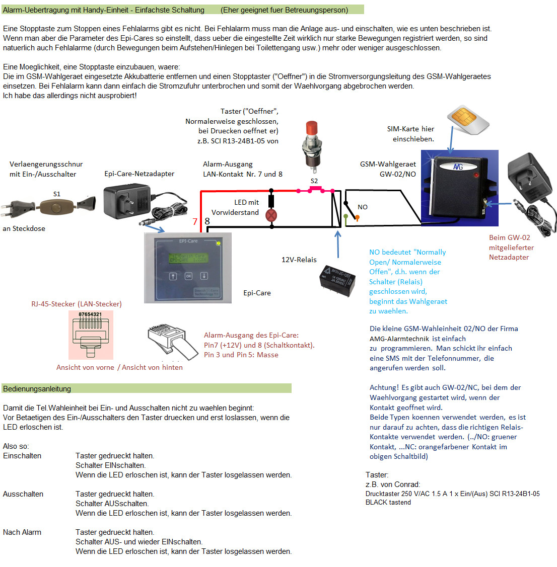Schaltung, um zu verhindern, dass bei Ein- und Ausschalten des Epi-Care ein Alarm gesendet wird.